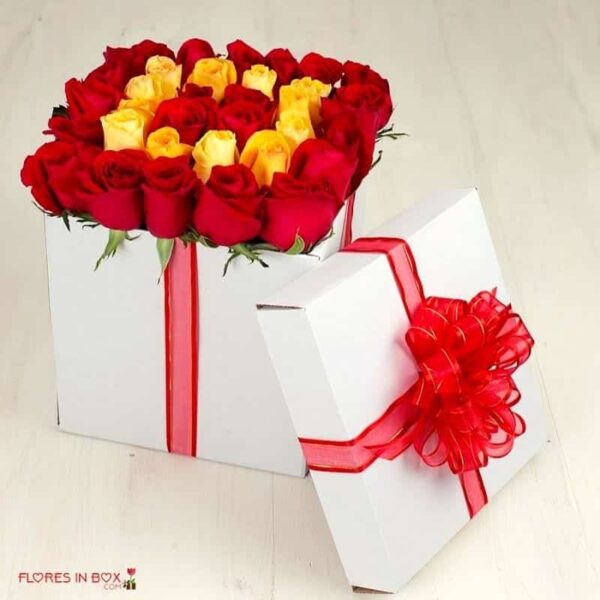 Caja de rosas con 48 rosas de 2 colores.