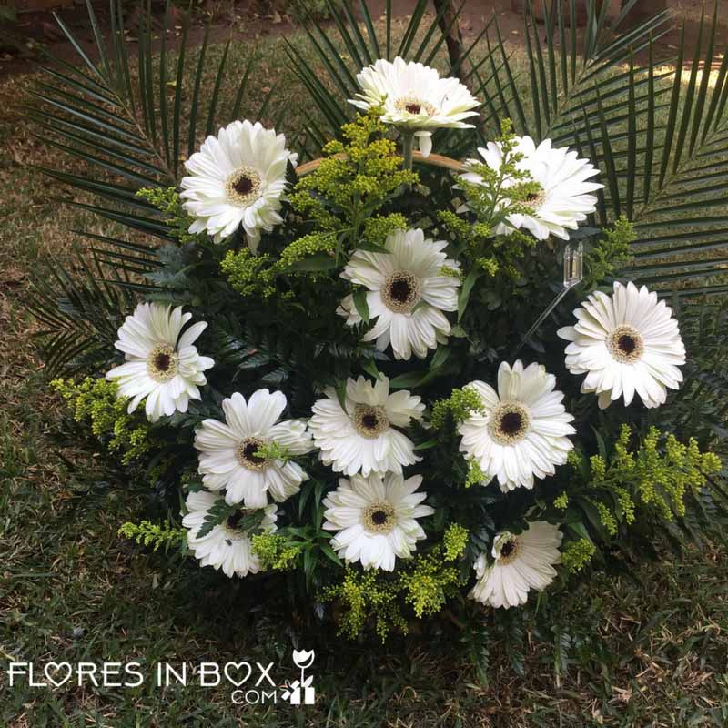 Canasta fúnebre de gerberas.