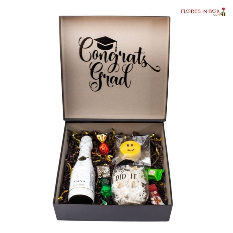 Hermosa caja de graduación personalizada disponible en blanca o negra. Un detalle perfecto para la ocasión.