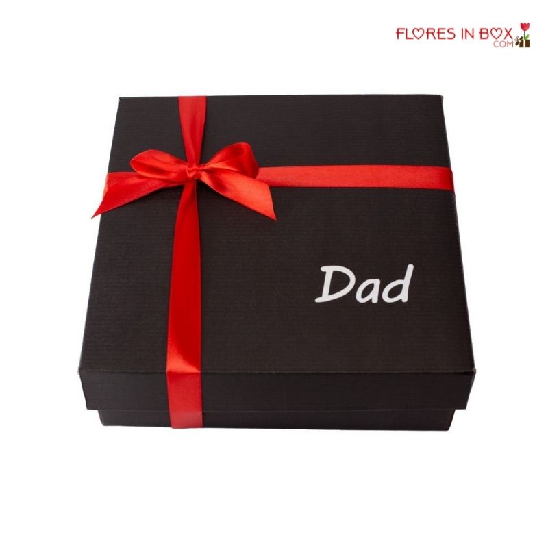 Hermosa caja sorpresa con media botella de vino, una copa y chocolates Ferrero Rocher.