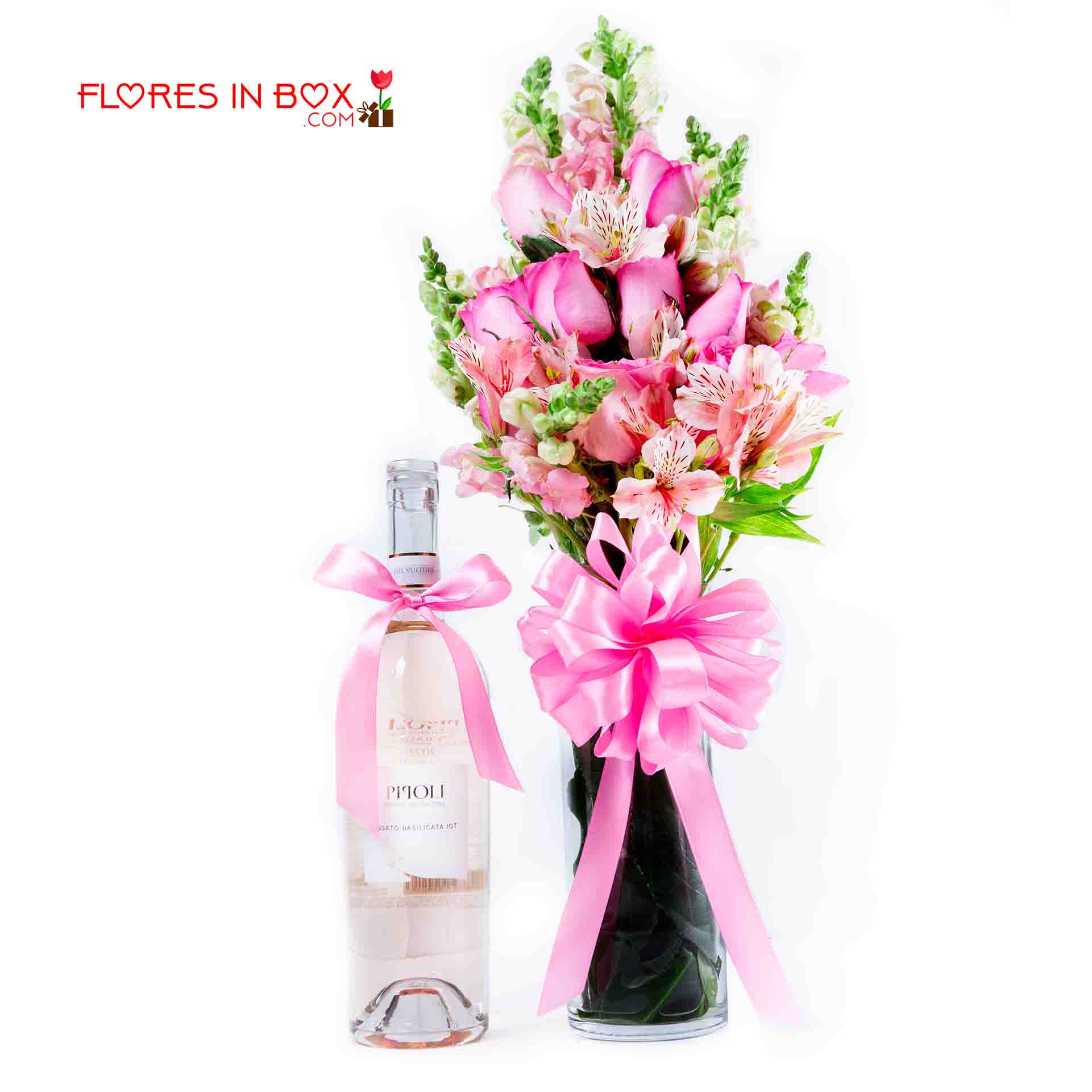 Fllorero con gerberas y acompañado de una botella de vino