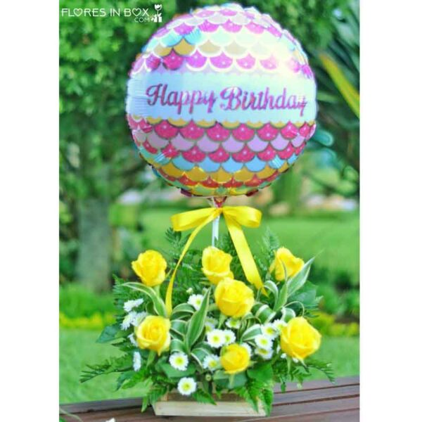 Hermoso arreglo de rosas, sanderianas, leder y más sobre una hermosa cajita de madera.