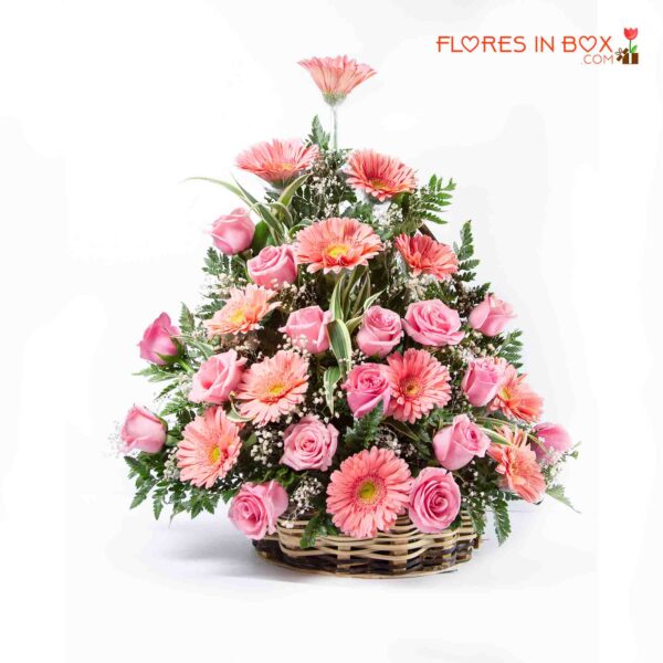 Bello arreglo floral elaborado con rosas rosadas y Gerberas rosadas en un bello diseño que resaltara el amor por mamá.