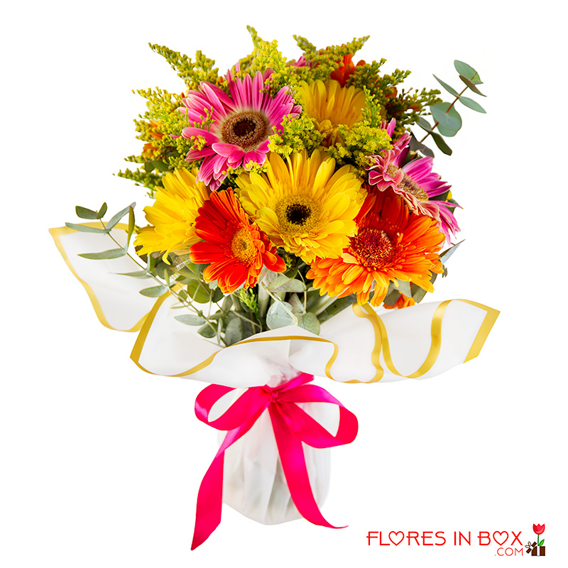 Bello ramo de Gerberas de 12 unidades, papel coreano y moña a tu gusto