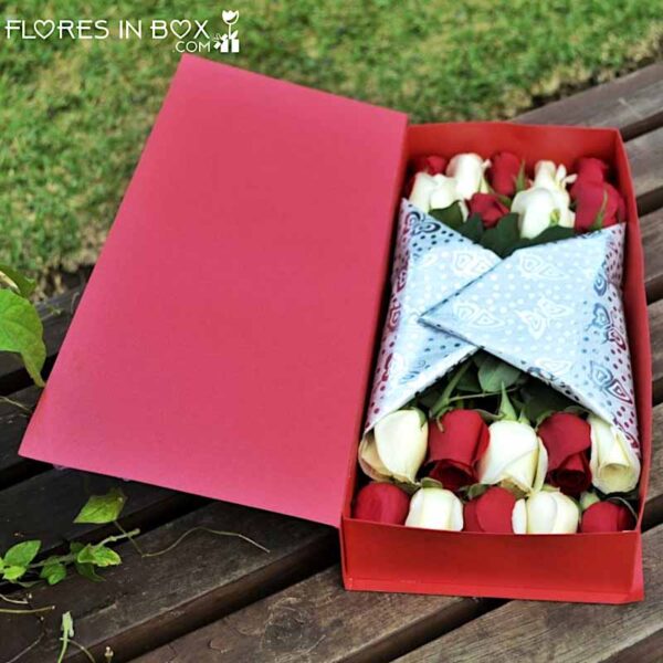 Hermoso arreglo premium de rosas sobre una elegante caja negra