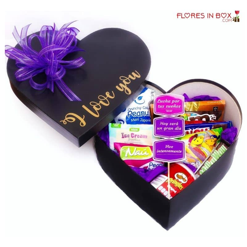 Deliciosa caja de chocolates, dulces, maní y mucho más.