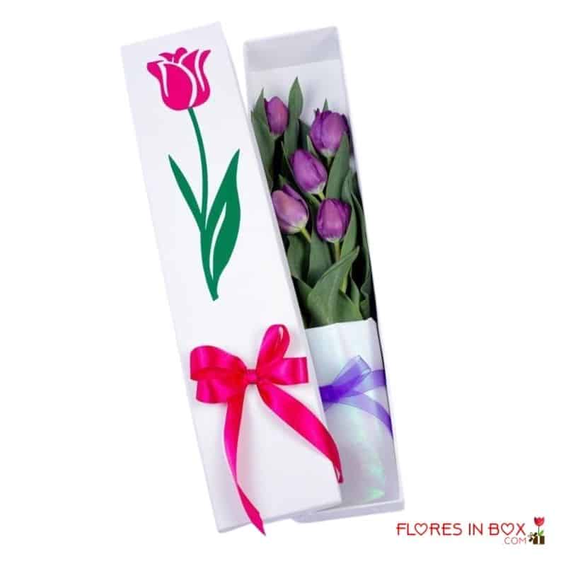 Hermosa caja blanca con tulipanes. Disponibilidad sujeta a la temporada.